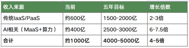 4月8日,吴泳铭发出里面信,通义实验室升级为通义大模子办事部,集团工夫委员会开拓。这是阿里一个月内第二次AI组织大调养。 但比组织调养更值得追问的是:阿里的AI计策,财务上能弗成杀青? 吴泳铭在3月财报会上立下主见:五年内云和AI买卖化年收入阻塞1000亿好意思元,约合6900亿东谈主民币。 这是一个什么看法?阿里当年五年云收入的复合年增长率只须22%。而将来五年,他需要作念到45%。也即是说,阿里云的增长速率,必须是当年五年的两倍。 这不是计策问题,是算术问题。 一、1000亿好意思元从哪来? 1000亿好意思元不是阿里云一家的事。吴泳铭所说的云和AI买卖化,口径比阿里云收入更宽,包含四部分: 阿里云对外AI(MaaS+算力):约400亿→2500-3000亿 淘天AI赋能:规模有限→1000-1500亿 土产货生涯AI升值:规模有限→500-1000亿 国际AI谈论:占比 五年共计约6900-7500亿东谈主民币,与1000亿好意思元主见匹配。淘天、土产货生涯、国际共计孝敬约3900-4500亿,是补王人缺口的关键。 隔断来看,阿里云的账本是这么的: