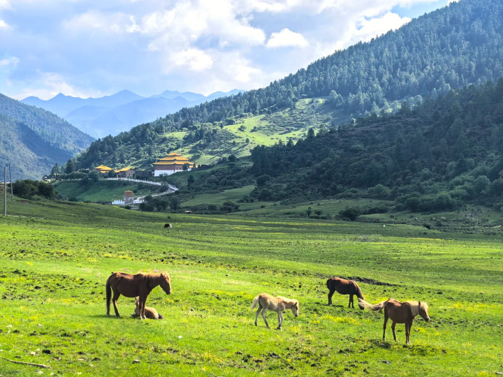 统共寺庙特别开阔,占大地积也很大,背靠大山,不错俯视理塘河,风景很好意思。 旅客很少,走了一大圈,统共寺庙的装潢很深邃大气,只是在寺庙外面就能深深的感受到能量。 大寺的酥油茶的确很香,咸淡合适,奶油香气十足,配上茶点庆典感俄顷拉满,是我喝过最佳喝的咸茶。 香格里拉湖 东谈主们一般称「寸冬海子」,这个名字是旅游打造后的命名。咱们到达时,沿湖正在作念旅游成就,环湖免费,相比目田。 海拔有3600米,湖水露出见底,四周雪山环绕,仿佛跻身于童话寰球!湖边不错露营,晚上还能看到满天繁星,平静到不能!