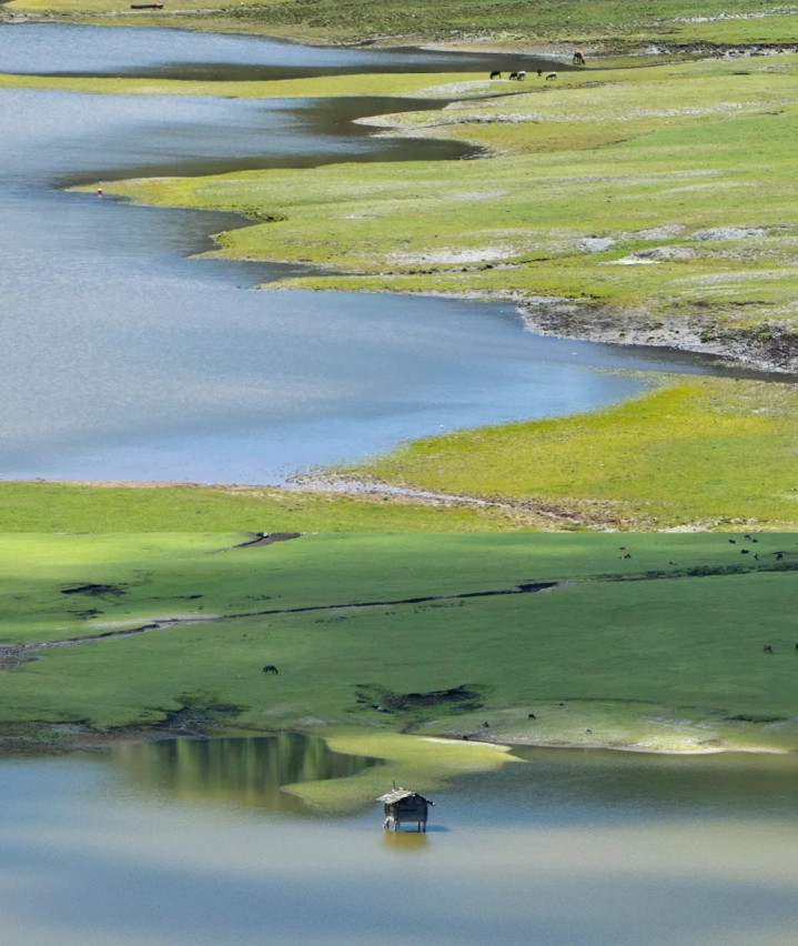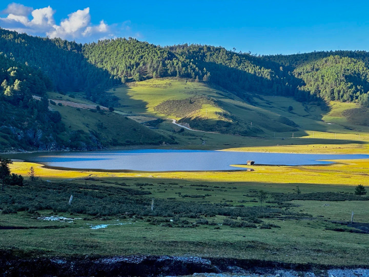 刚运行咱们告成到导航的所在就露营吃泡面了,其后才发现,往前开有一个山坡,我的天啊~一定要开当年,登上山坡能看到,这个湖,很长,湖中点摘草甸,山坡两岸的舒服也完全不同样。 香格里拉湖被群山环绕,水光潋滟,唾手一拍齐是大片,山环着湖水、湖水反照着山岭,酿成了山中有水、水中有山的奇特景不雅,太好意思啦~一种无法用讲话形容的好意思,香格里拉湖的日出和日落齐超颜面,拍照也能拍出绝好意思大片! 这邑邑芊芊、池水反照,一片婉约舒服,一时辰我的确忘了这里是藏区,是大凉山深处,一经念着六字箴言、转着转经筒的藏民把我拉了转头。
